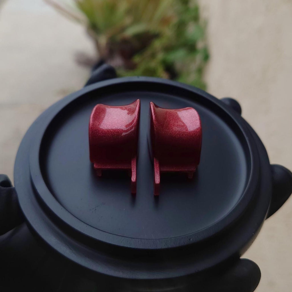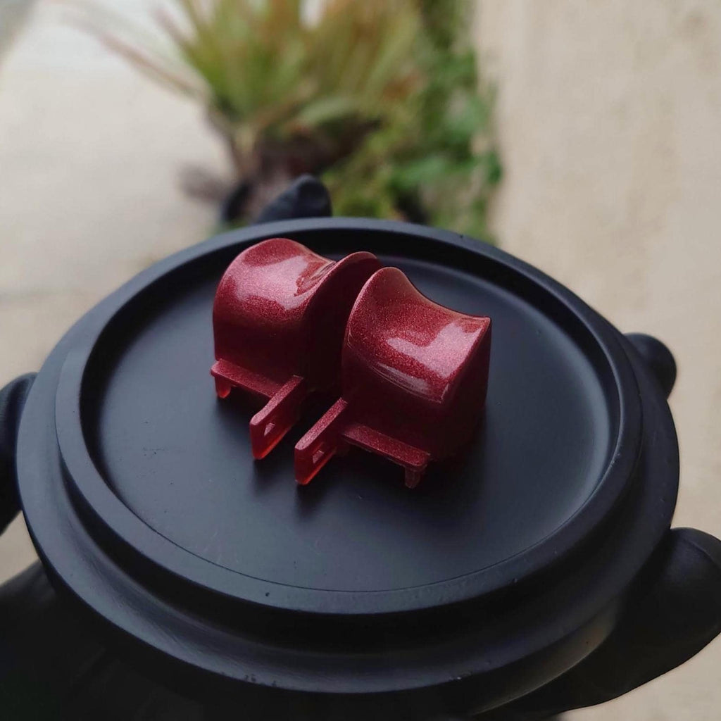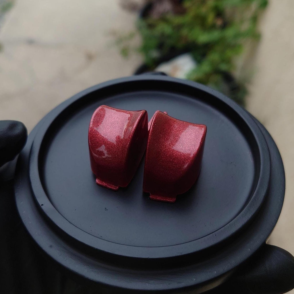 Made to match the Blood Red Nebula Gamecube Controller Button set. These triggers (or shoulder buttons) feature a glossy finish that retains the OEM style design, while allowing for a smoother glide after pressing the buttons into the controller.