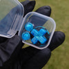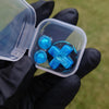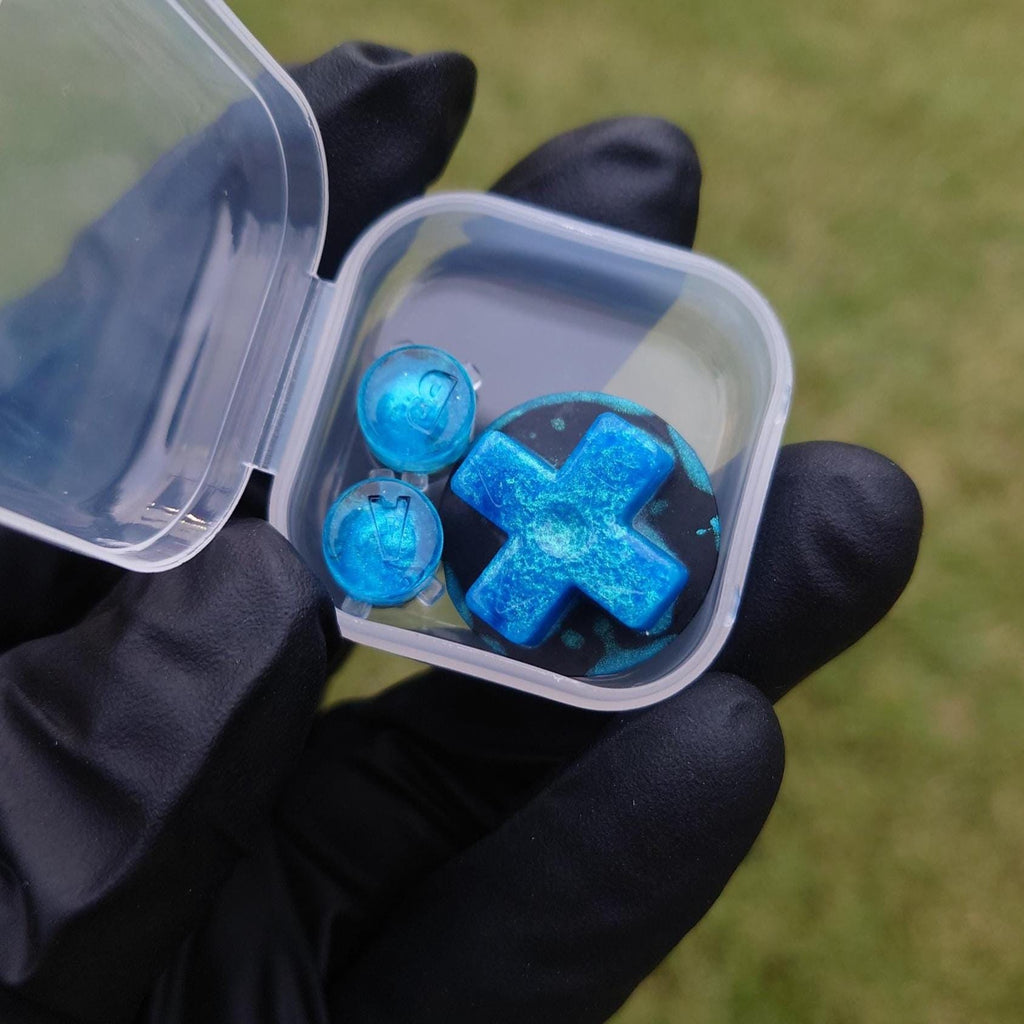 This listing is for a "Calm Sea Nebula" Gameboy Advance (GBA) button set made using a refreshing blue pigment, and finished off with a dash of sparkles to resemble stars!